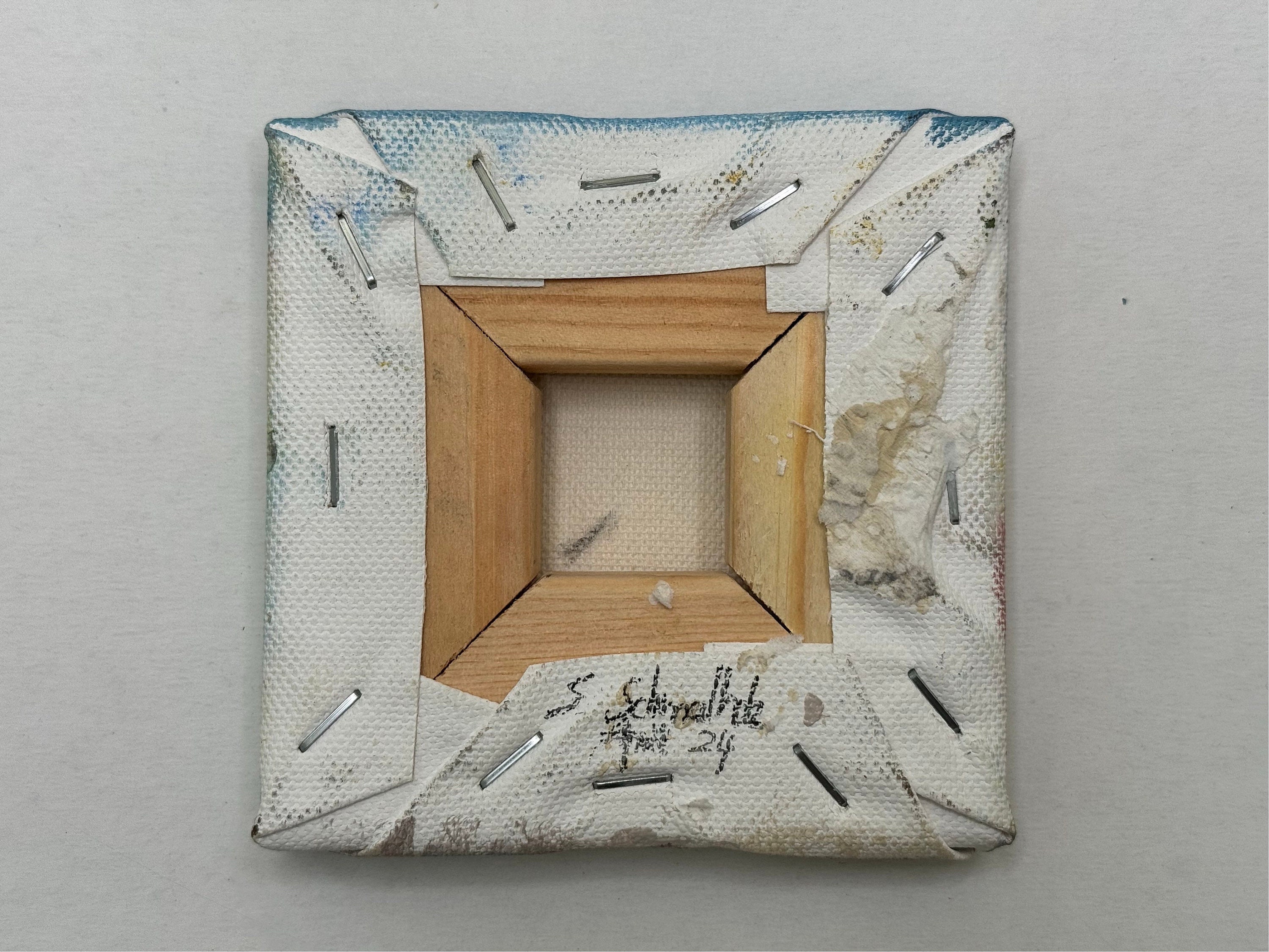 Gefertigt mit Kaffeesatz, Rotwein, Guache und Aquarelle – auf einer hochwertigen Bioleinwand auf Holzrahmen (10 x 10 cm).